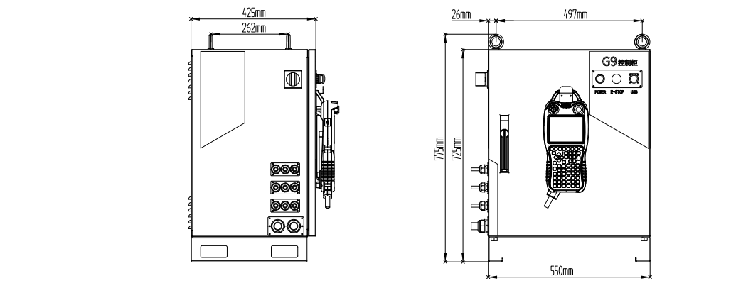 Using imported forced-disconnection relays, dual-circuit emergency stop is provided externally. When any emergency stop button is pressed, the power circuit and servo unit are simultaneously and immediately processed to forcibly stop the robot’s movement, thereby achieving safe emergency stop.