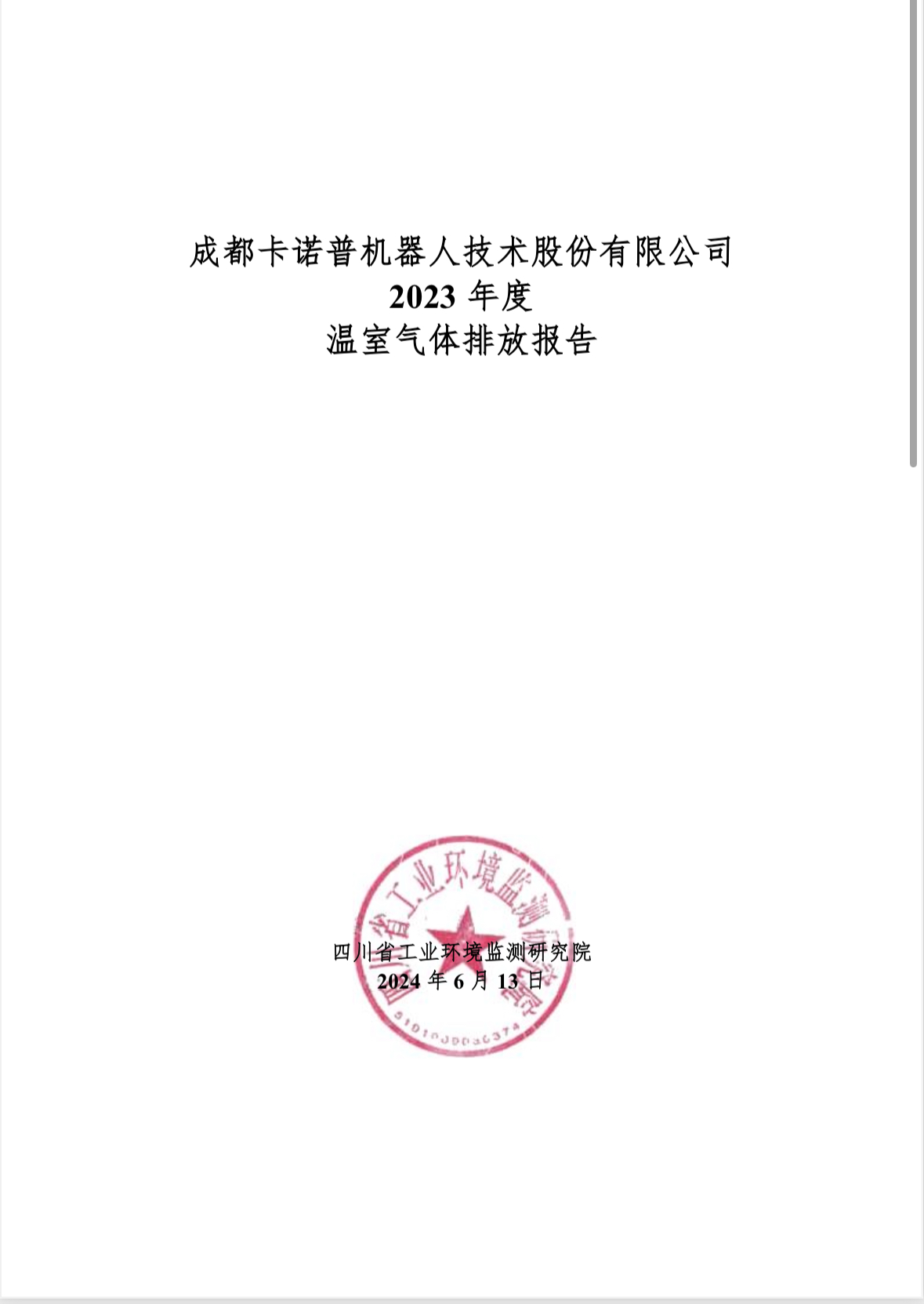 成都星空電競機(jī)器人技術(shù)股份有限公司 2023 年度 溫室氣體排放報(bào)告