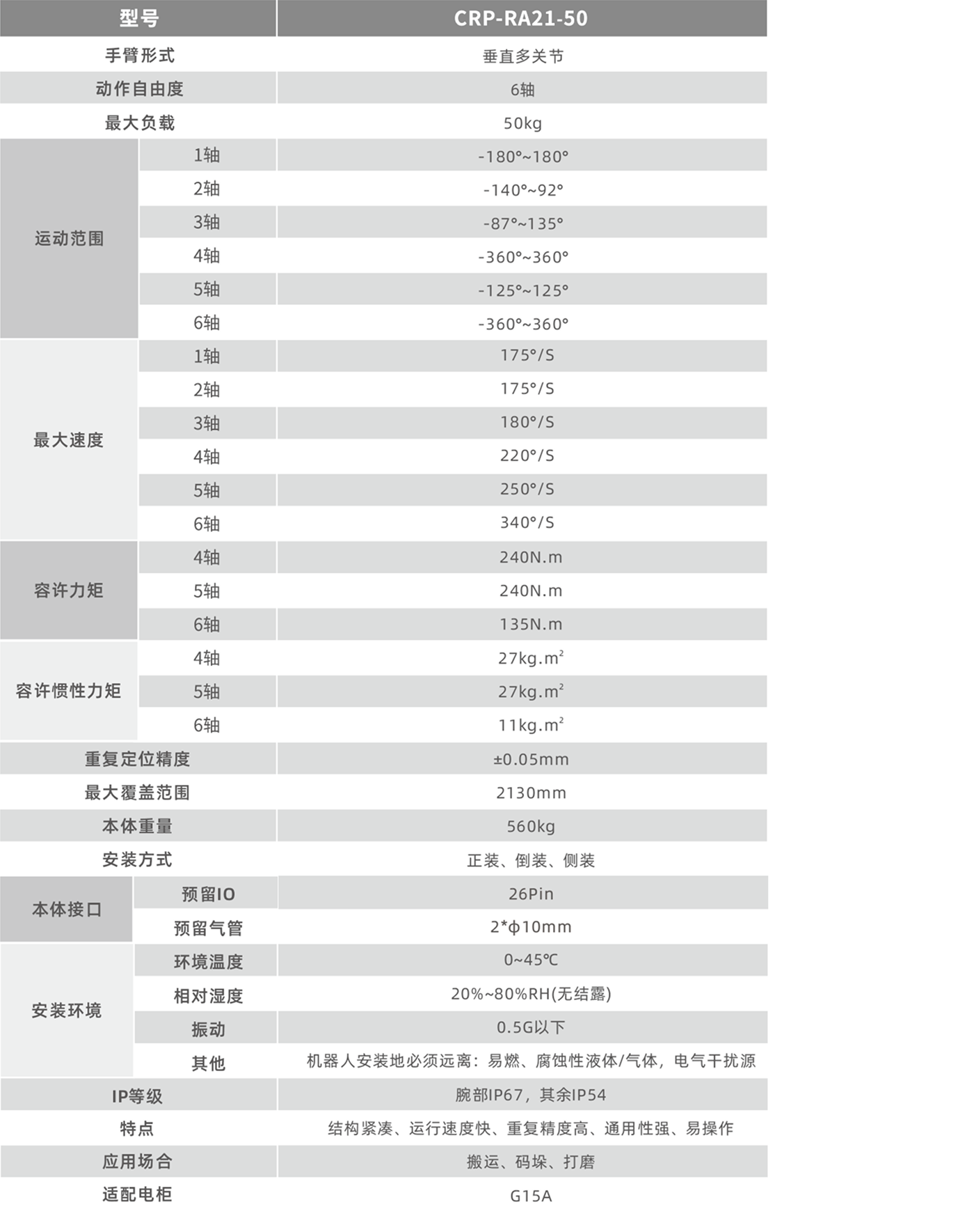 運行速度快,重復定位精度,適用于搬運、裝配、打磨等場景。
