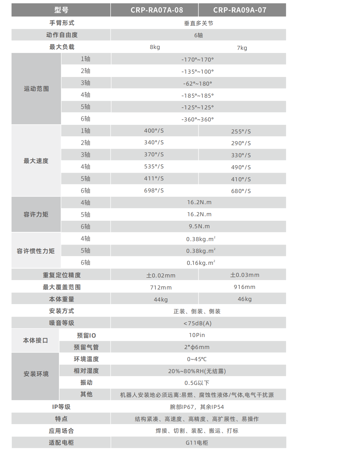 臂長712mm,手腕負載容量大,額定負載8kg,可輕松應對多種應用場合。
