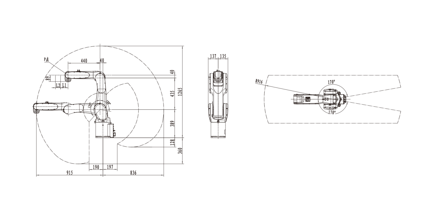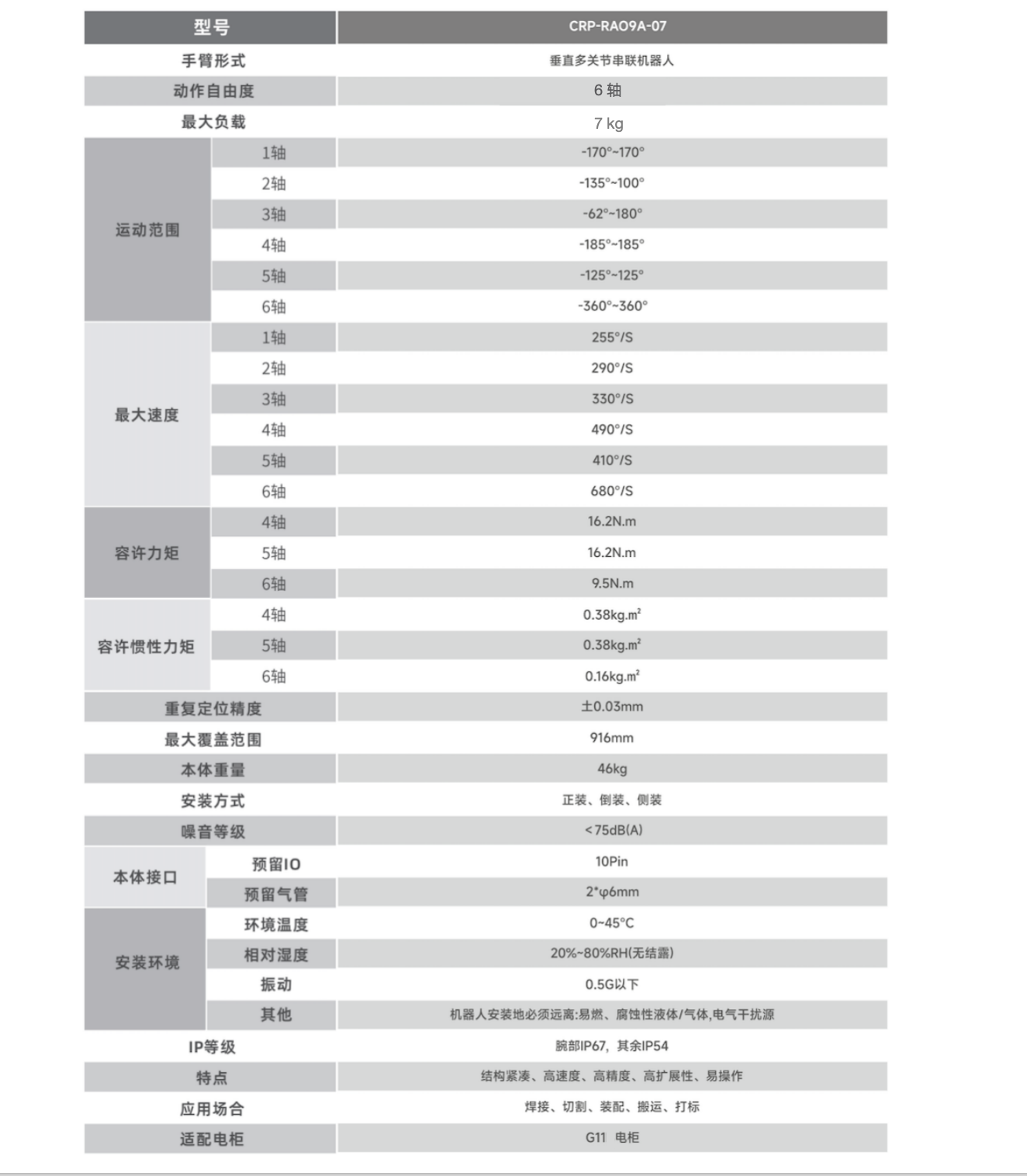 臂長916mm,手腕負載容量大,額定負載7kg,可輕松應對多種應用場合。